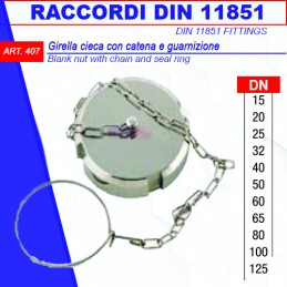 Girella cieca DIN con catena e guarnizione DN 40 INOX